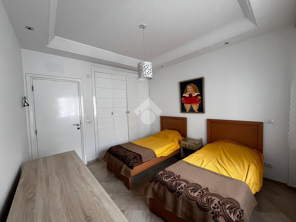 Un appartement S+2 situé au 1er étage d’une résidence sécurisée, bien entretenue, dotée de double ascenseurs et d’une piscine commune. L’appartement se compose d’un salon lumineux avec accès à un balcon, d’une cuisine indépendante équipée (hotte, plaque de cuisson, four et réfrigérateur, machine à laver,micro-ondes), de deux chambres avec dressings, ainsi que d’une salle d'eau et salle de bain. Il bénéficie également de chauffage central et de climatisation split