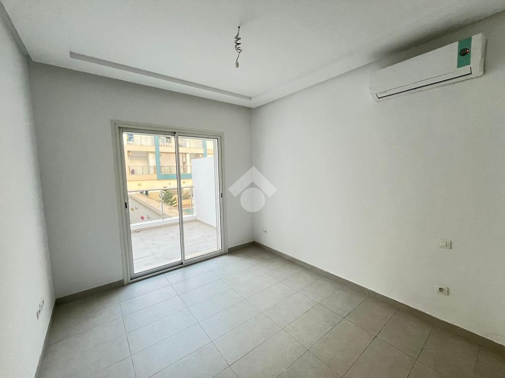 C'est un appartement en S+2 vide, jamais habité, situé au premier étage d’une résidence sécurisée et bien gardée, dotée d’un ascenseur et d’une piscine commune.