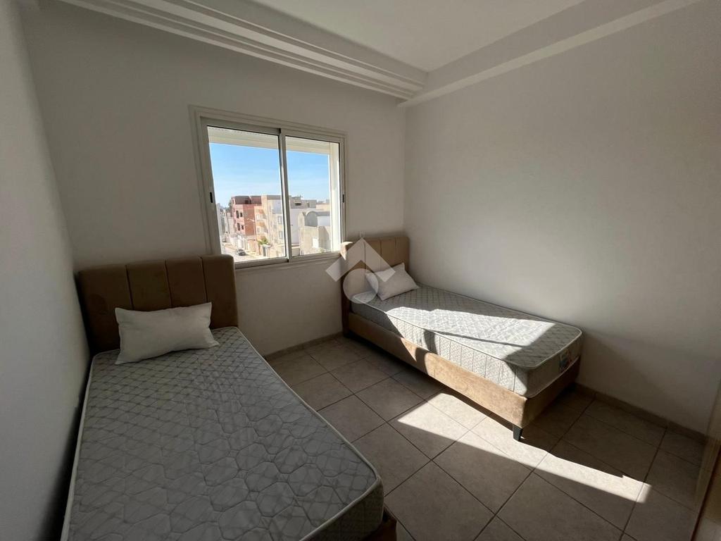 C'est un S+2 meublé, jamais habité, il est situé au 3éme étage d’une résidence gardée et équipée d’un ascenseur à coeur de cité elwafa AFH 2. L'entrée dessert un hall avec placard, un salon lumineux avec accés au balcon. La cuisine indépendante aménagée et entièrement équipée (plaque, hotte, four, réfrigérateur et machine à laver), avec accès au séchoir