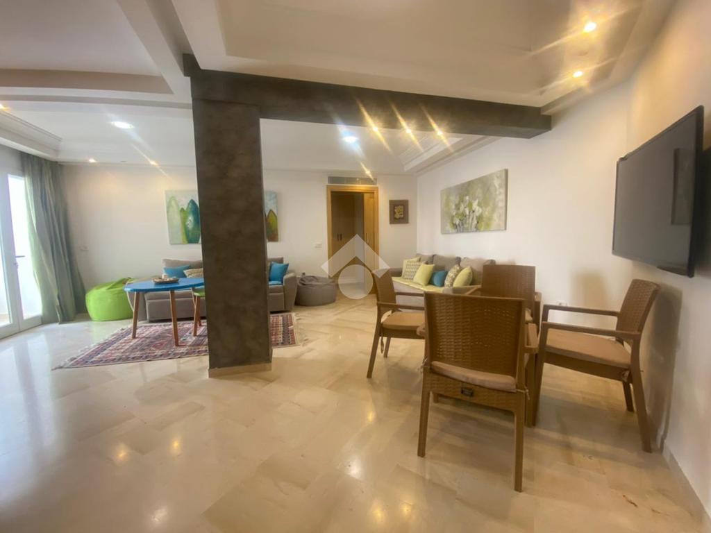 Appartement en S+1 meublé à louer à l’année, situé au 1er étage d’une résidence sécurisée et bien gardée, dotée d’un ascenseur et d’une piscine commune. Il se compose, à l’entrée, d’un salon et salle à manger lumineux avec accès à une terrasse offrant une agréable vue sur le jardin de la résidence. La cuisine semi-indépendante est entièrement équipée (plaque de cuisson, hotte, four, réfrigérateur, machine à laver, micro-ondes). Une salle d’eau pour les invités complète la partie jour. La partie nuit comprend une chambre avec dressing ainsi qu’une salle de douche. Climatisation et chauffage sont disponibles. Place de parking en sous-sol incluse. Appartement confortable et fonctionnel, idéal pour une location annuelle