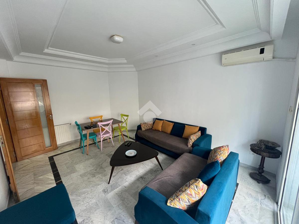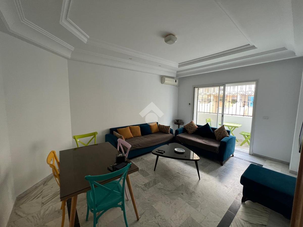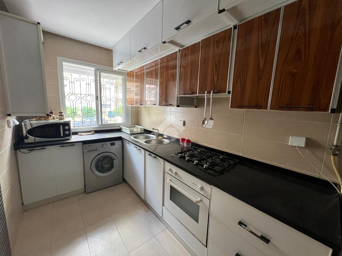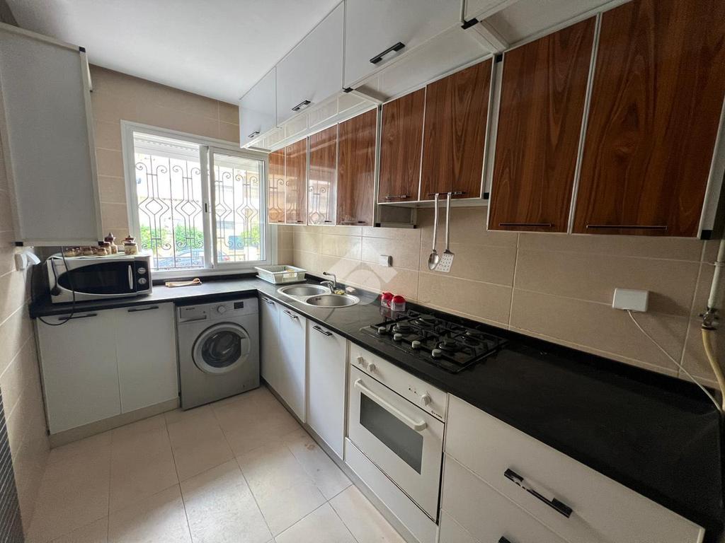 Un appartement S+2 situé au rez-de-chaussée d’une résidence sécurisée, à proximité immédiate de toutes les commodités. Entièrement meublé, il se compose d’une cuisine indépendante, parfaitement équipée (hotte, plaque de cuisson, four, réfrigérateur, machine à laver). Le salon lumineux s’ouvre sur un balcon agréable.