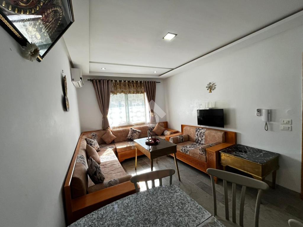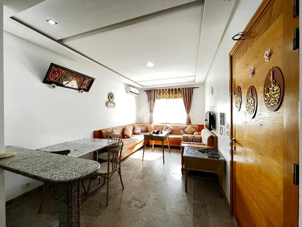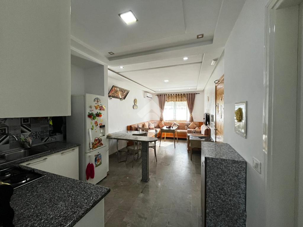 Un appartement S+1 meublé situé au 3 étage d’un immeuble familial. À l’entrée, vous découvrirez un salon ainsi qu’une kitchenette aménagée et équipée (plaque de cuisson, hotte et réfrigérateur). L’appartement comprend également une salle d’eau et une chambre à coucher avec dressing encastré. Celle-ci donne sur un séchoir où sont installés une machine à laver et une chaudière. Le bien est équipé de deux climatiseurs split ainsi que du chauffage central, assurant un confort optimal tout au long de l’année.