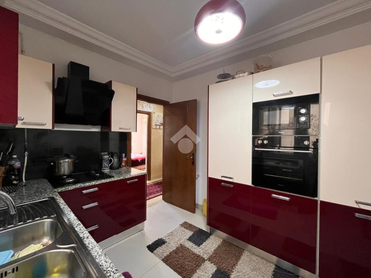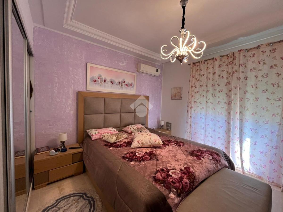 Cet appartement en S+3 de 150 m² situé au 2 étage d’une résidence sécurisée avec ascenseur, au cœur de la Cité El Wafa (AFH). La partie jour se compose d’un grand salon lumineux permettant d’aménager un espace salon et une salle à manger, ouvrant sur un balcon offrant une vue partielle sur la mer. La cuisine, indépendante, est aménagée et entièrement équipée (plaque de cuisson, hotte, four, micro-ondes, deux réfrigérateurs encastrés et machine à laver). Elle donne également accès à un séchoir. Une salle d’eau avec cabine de douche ainsi qu’un espace dressing complètent cet espace. La partie nuit comprend trois chambres à coucher : deux chambres avec dressings, dont une avec accès au balcon offrant une vue sur mer, ainsi qu’une suite parentale disposant d’un dressing et de sa propre salle de bain. L’appartement est équipé du chauffage central et de la climatisation, assurant un confort optimal. Il bénéficie également d’un système de vidéosurveillance et d’une alarme.
