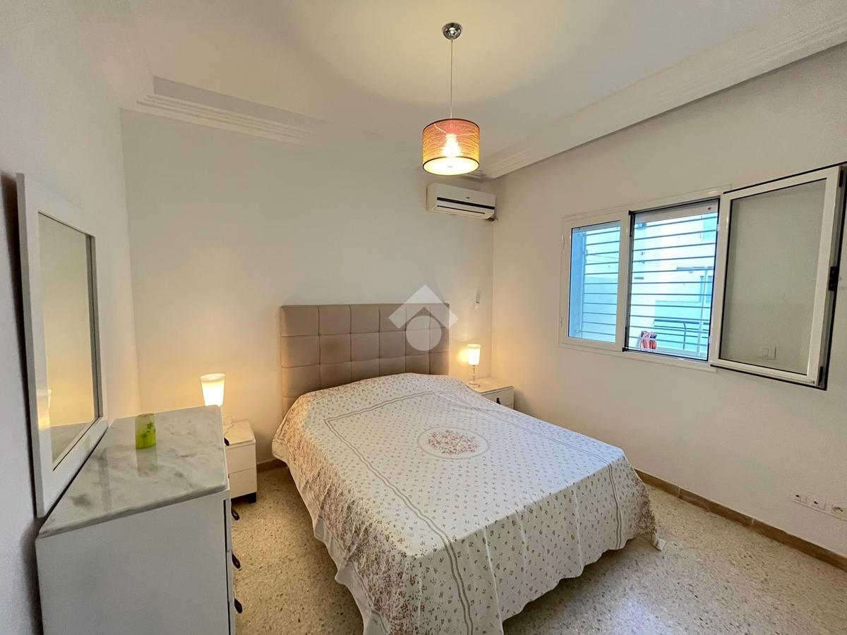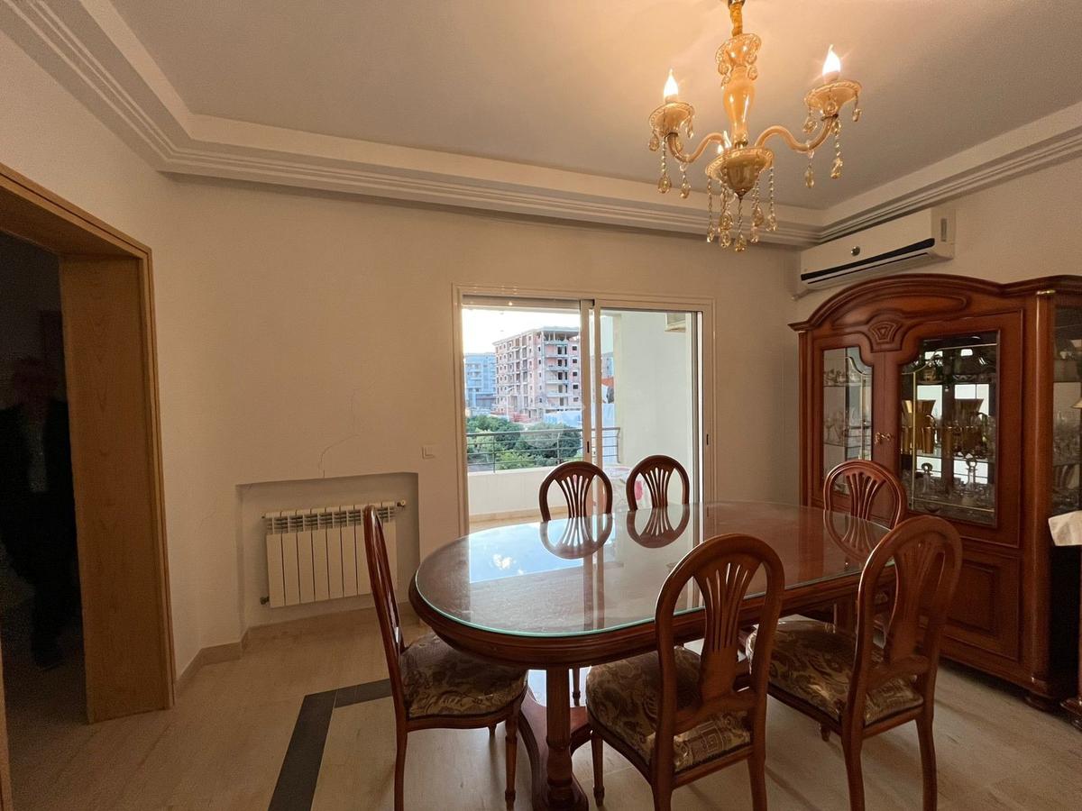 C'est un appartement en S+2 situé au 2éme étage d’une résidence bien gardée, dotée de deux ascenseurs. Dès l’entrée, vous trouverez un hall avec placard encastré, menant à une cuisine indépendante entièrement équipée (plaque, hotte, four) avec accès au séchoir. Dans la contunuité un salon et une salle à manger lumineux ouvrant sur un balcon de 8 m².