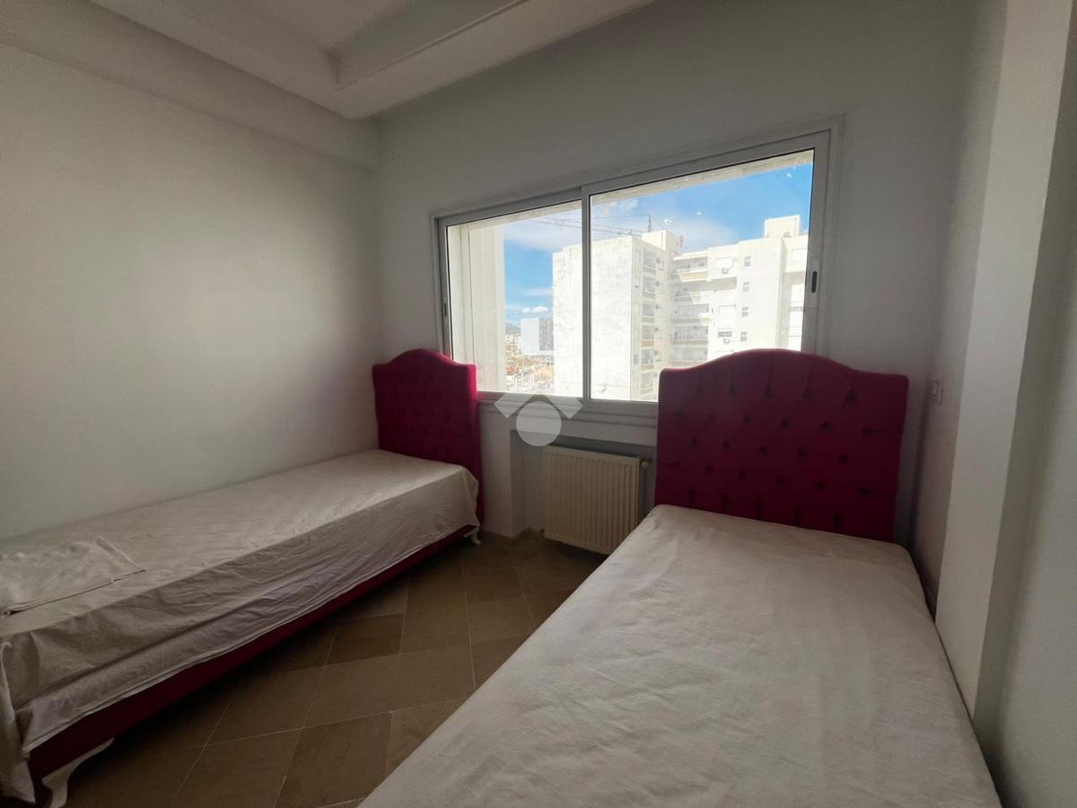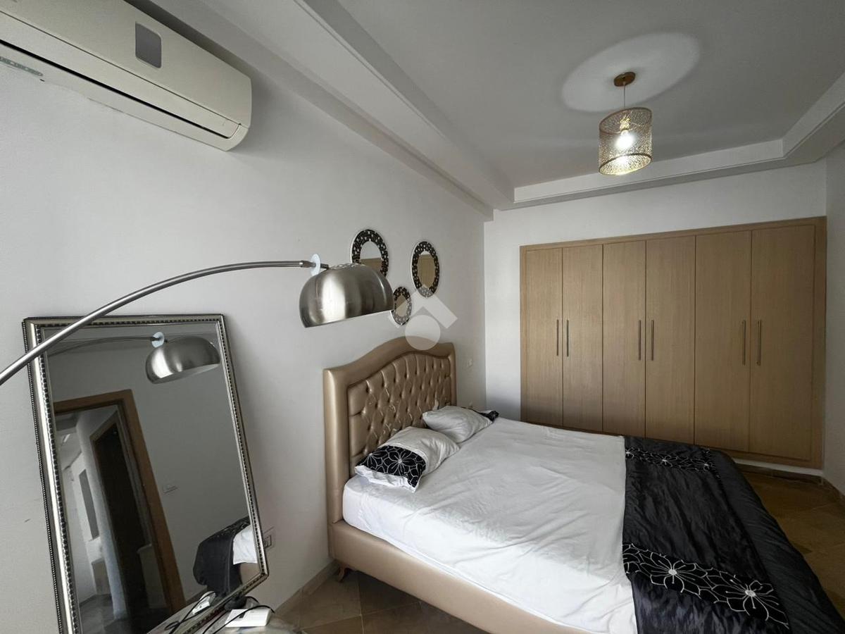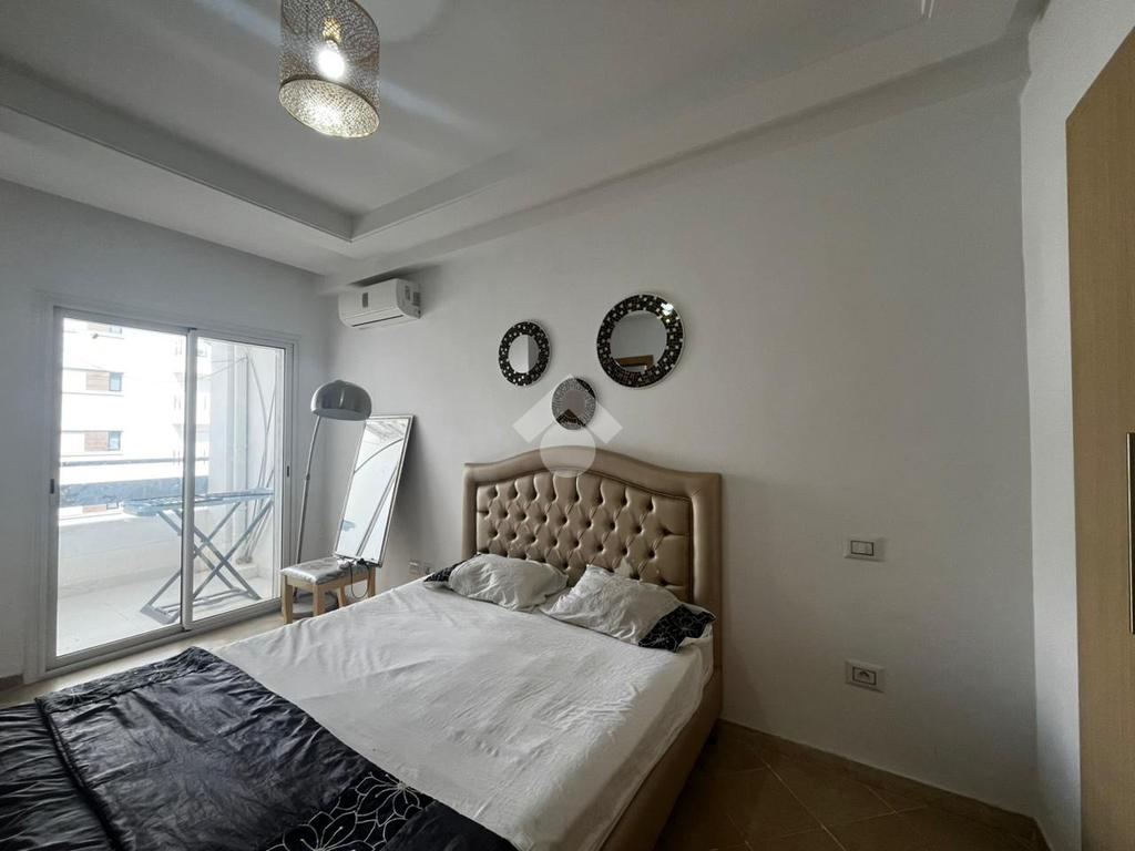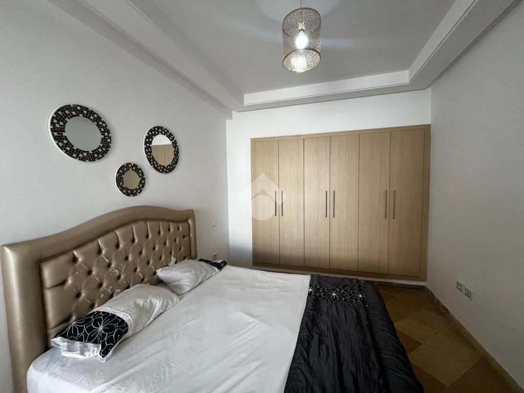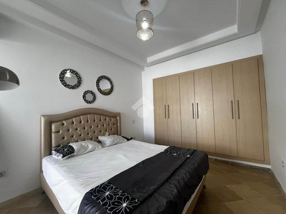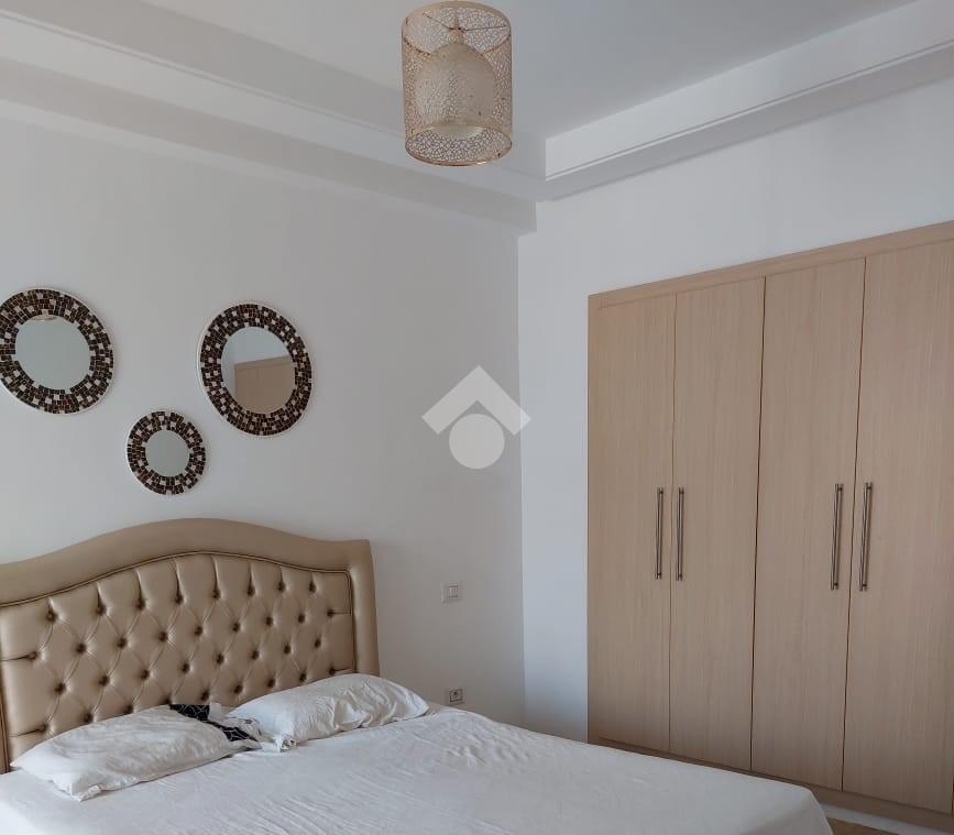 Cet appartement en S+2 de 94m² est situé au troisième étage d'une résidence sécurisée avec piscine et double ascenseurs.