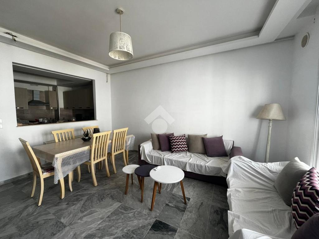 L'entrée ouvre sur un salon lumineux donnant accès à un balcon. Sur la gauche, une cuisine semi-indépendante, entièrement aménagée et équipée (plaque de cuisson, four et hotte).
