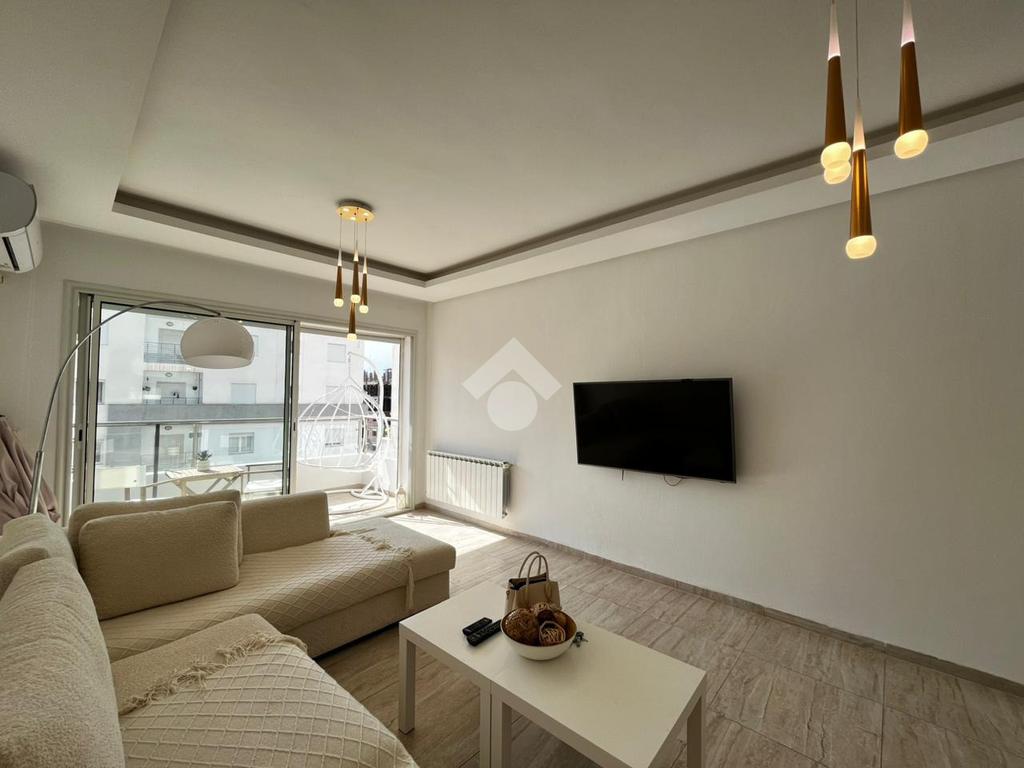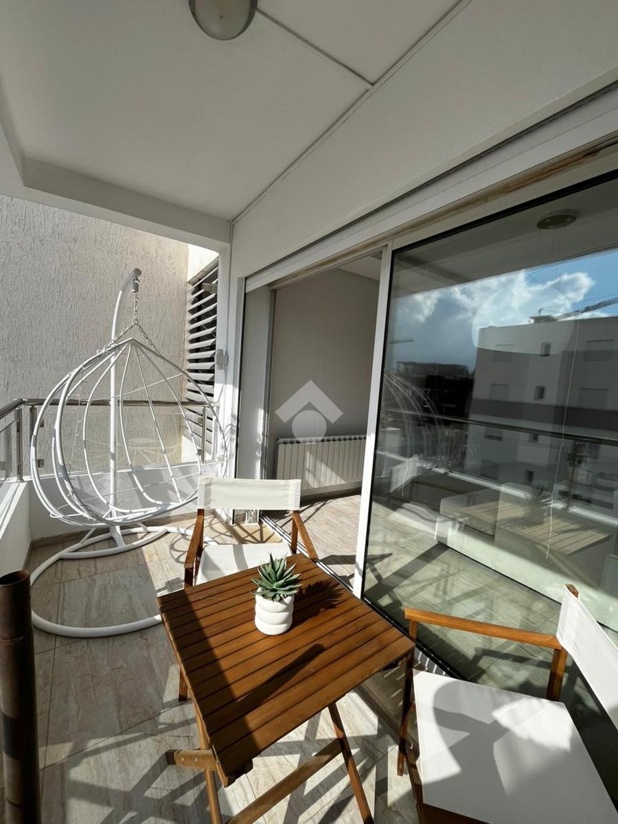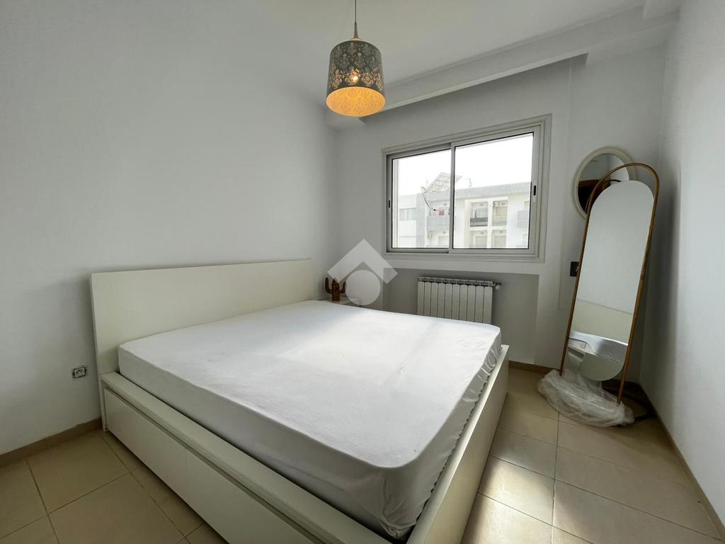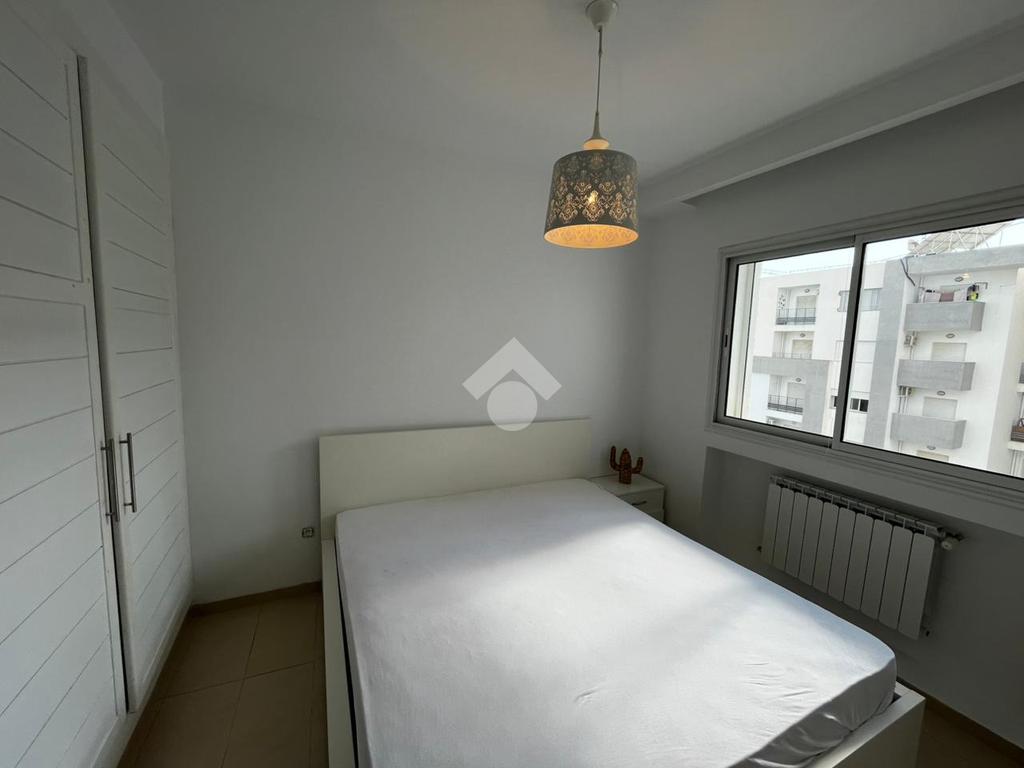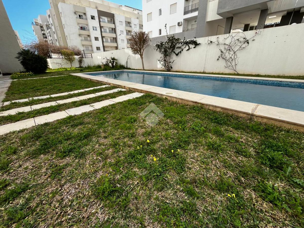 Appartement S+2 jamais habité, situé au 5 étage d’une résidence sécurisée avec double ascenseurs. Dès l’entrée, un hall accueillant dessert un vaste salon baigné de lumière naturelle, ouvrant sur un balcon avec une agréable vue sur la piscine. La cuisine, indépendante et entièrement aménagée, est complétée par un séchoir fonctionnel. L’espace nuit se compose de deux chambres à coucher : une première avec balcon privatif, et une seconde dotée d’un dressing encastré et d’une fenêtre offrant une vue sur la piscine. Une salle de bain vient parfaire cet espace.
