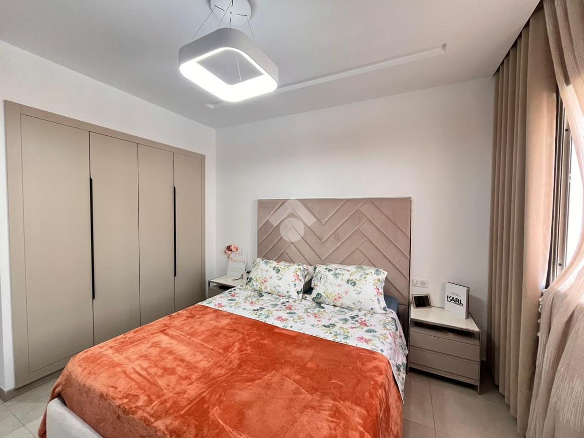 Appartement S+2 situé au 2éme étage d’une résidence sécurisée avec double ascenseurs. Dès l’entrée, un salon baigné de lumière naturelle, ouvrant sur un balcon avec une agréable vue partiel sur mer. La cuisine moderne ouverte aménagée et équipée ( hotte , four , plaque ) est complétée par un accés au séchoir communiquant au balcon . Une salle d'eau avec cabine de douche pour les invitées .