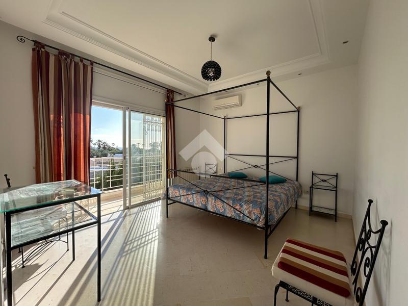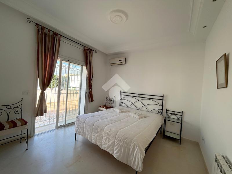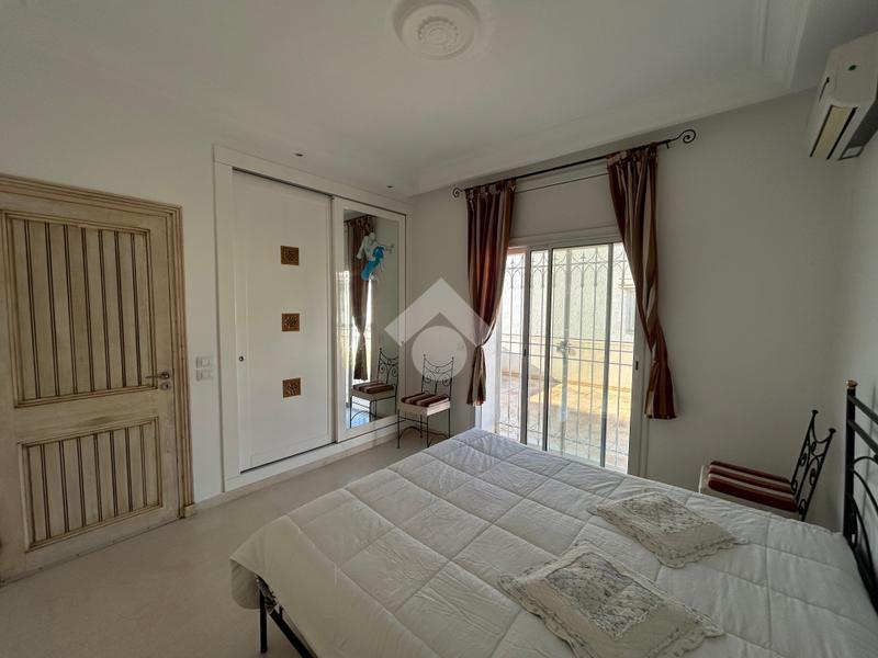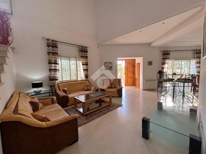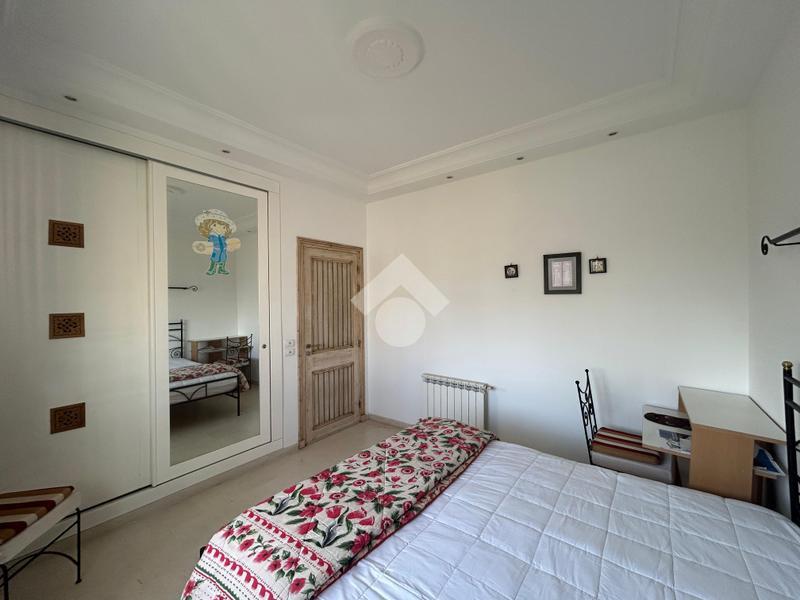 Située sur un terrain de 530 m² au sein d’un quartier résidentiel calme et prisé, cette villa meublée offre un cadre de vie confortable et harmonieux, agrémenté d’un jardin verdoyant soigneusement entretenu. Le rez-de-chaussée comprend un salon lumineux, une salle à manger conviviale, une cuisine aménagée et entièrement équipée (plaque de cuisson, hotte, four, micro-ondes, machine à laver et lave-vaisselle), ainsi qu’une salle d’eau avec douche pour les invités. À l’étage, la partie nuit se compose de deux chambres meublées partageant une salle de douche commune, dont l’une bénéficie d’un accès à une terrasse, d’un bureau et d’une suite parentale disposant de son dressing et de sa salle de bain privative, avec une agréable vue sur mer. Le troisième niveau accueille une buanderie. La villa est dotée d’un système photovoltaïque, du chauffage central et de la climatisation en split système, garantissant un confort optimal et une meilleure performance énergétique. À l’extérieur, une entrée pouvant accueillir jusqu’à trois véhicules ainsi qu’une douche extérieure complètent ce bien de qualité, idéal pour une résidence familiale dans un environnement paisible.